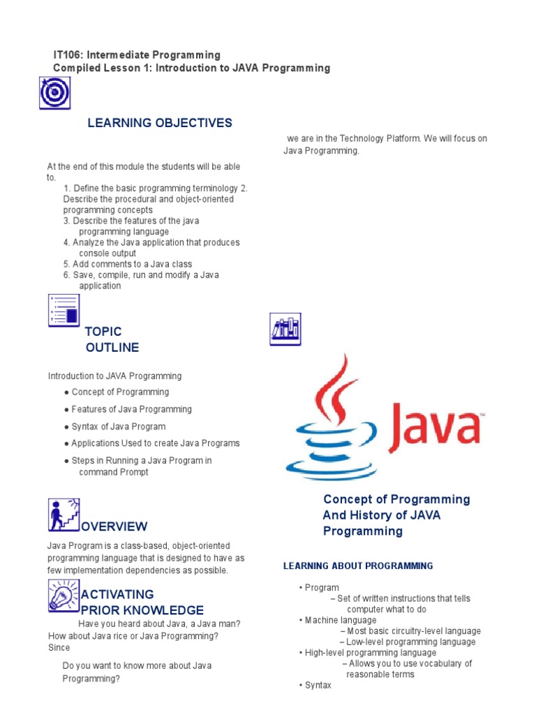 Compiled Lesson 1 - Introduction To JAVA Programming | PDF | Java ...