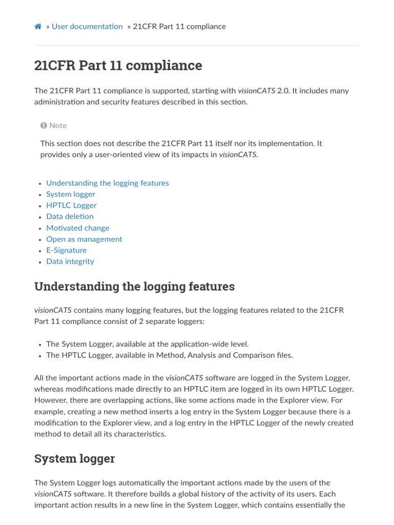 visionCATS 21CFR Part 11 Compliance Guide | PDF | Computer File | Logging