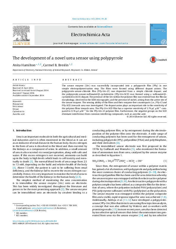 (PDF) The development of a novel urea sensor using polypyrrole | carmel ...