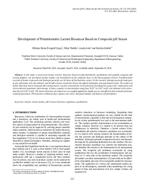 (PDF) Development of Potentiometric Lactate Biosensor Based on ...