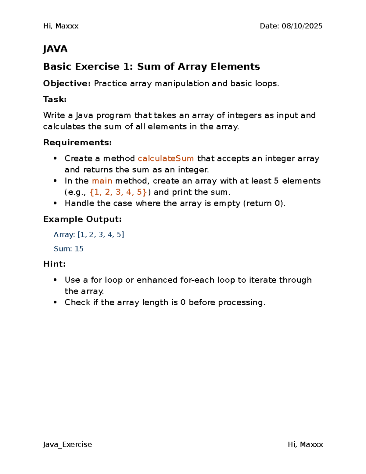 Java_Exercise: Comprehensive Coding Practice in OOP and Arrays - Studocu