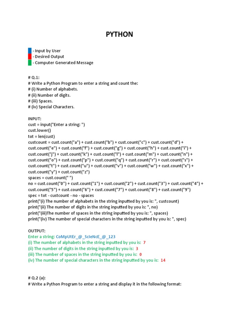 String in Python For Class 11 | PDF | String (Computer Science ...