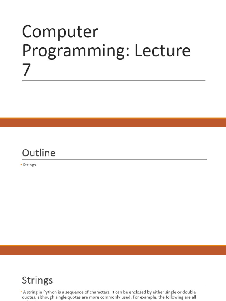 Computer Programming - Lecture 8 | PDF | String (Computer Science ...