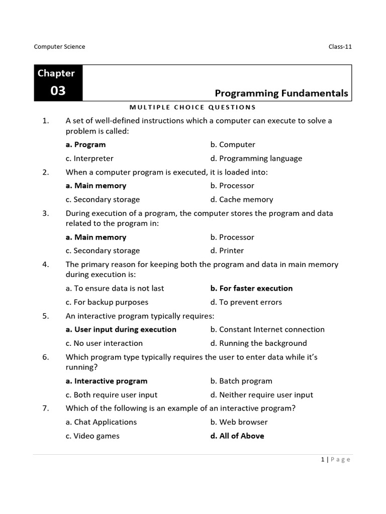 Ch-03: Programming Fundamentals - MCQs | PDF | PDF | Programming ...