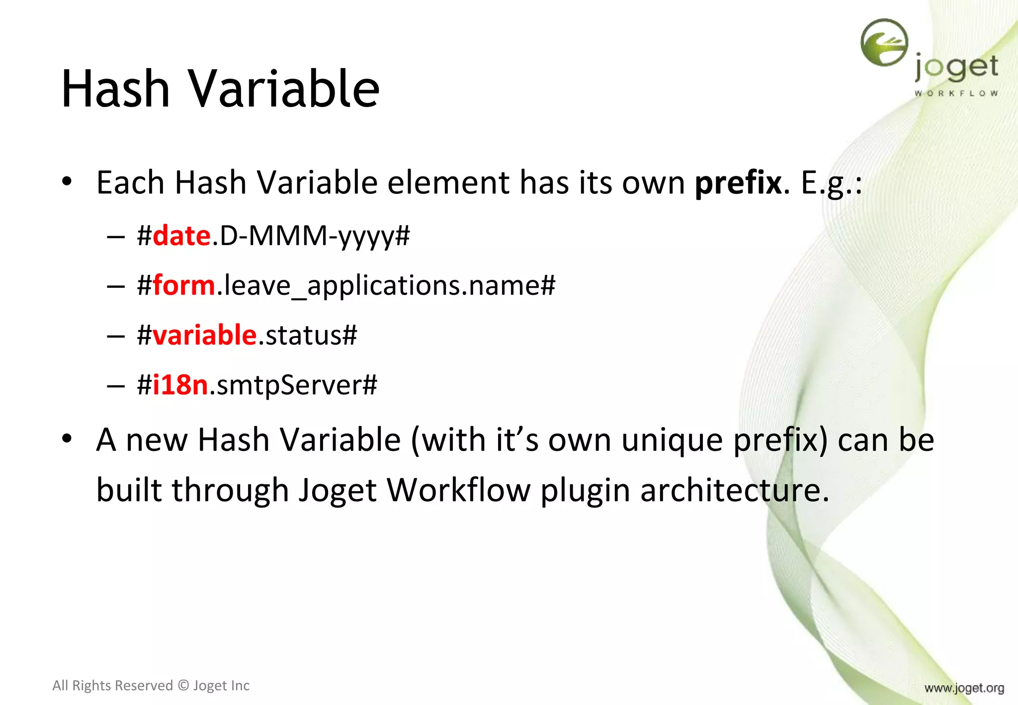 Joget Workflow v6 Training Slides - 9 - Hash Variable | PPTX