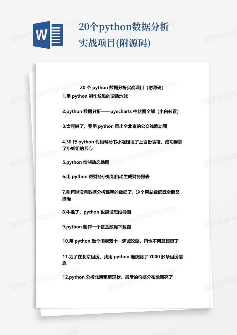 20个python数据分析实战项目(附源码)Word模板下载_编号qgxmkvwa_熊猫办公