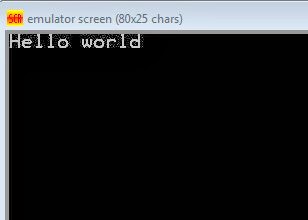 Assembler 6502c64 language Hello World program sample in editor window ...