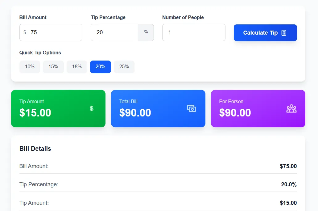 Tip Calculator β Calculate Tips & Split Bills Online
