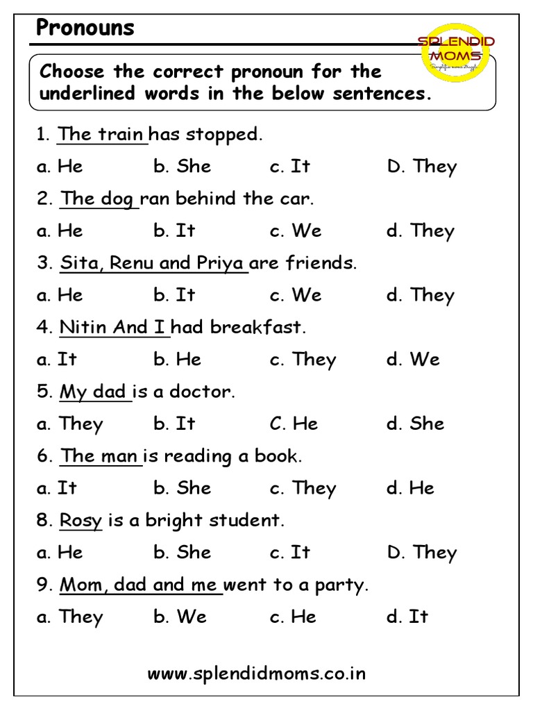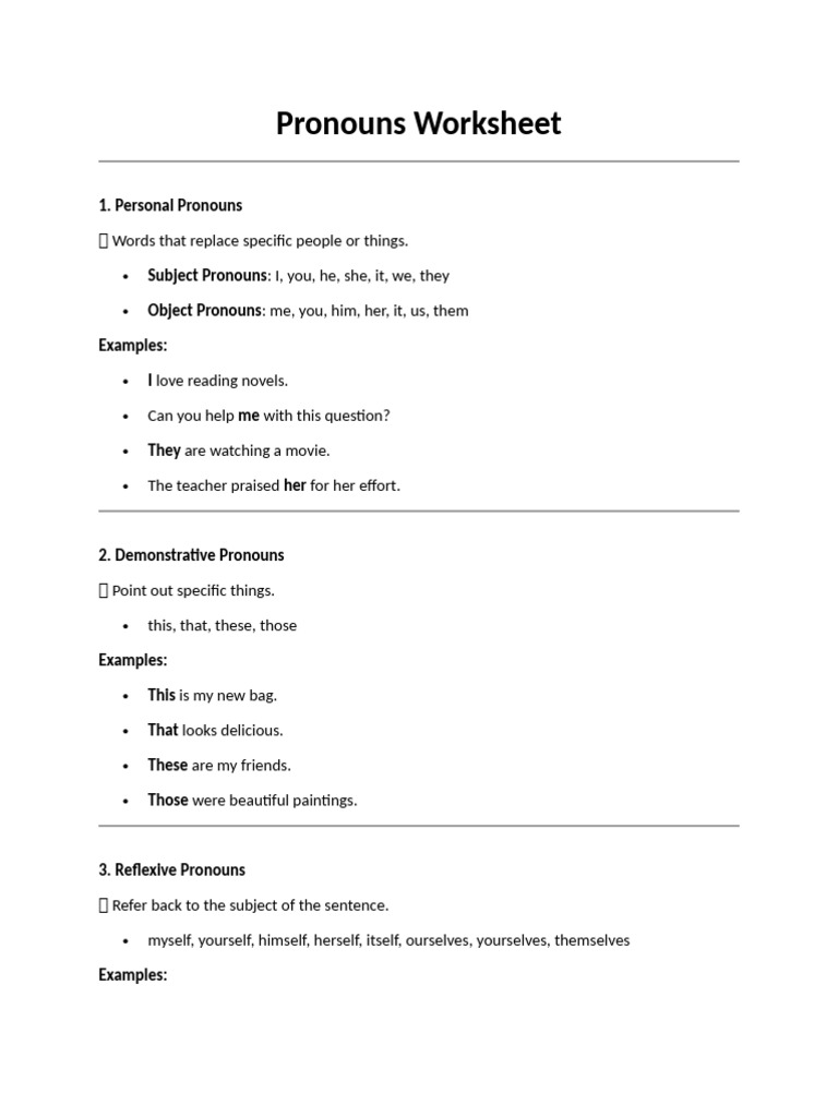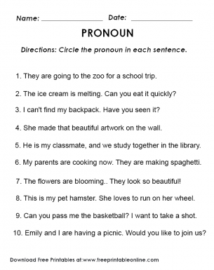 10 Pronouns Examples - Free Worksheets Printable