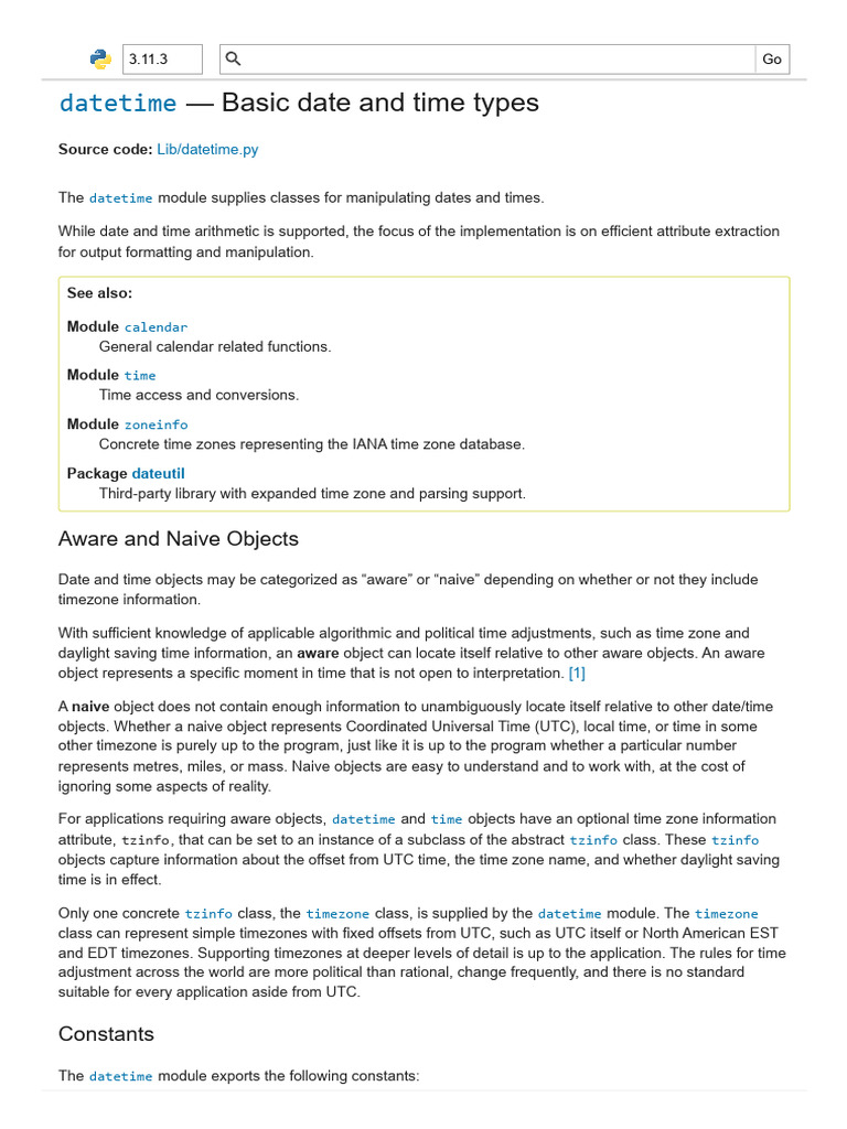 Datetime - Basic Date and Time Types - Python 3.11.3 Documentation | PDF