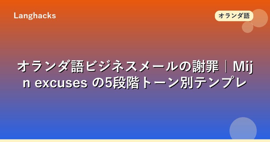 オランダ語ビジネスメールの謝罪|Mijn excuses の5段階トーン別テンプレ | Langhacks