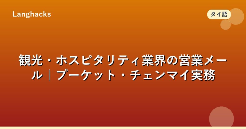 観光・ホスピタリティ業界の営業メール|プーケット・チェンマイ実務 | Langhacks