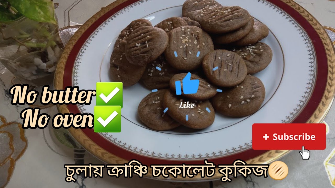 বাটার ছাড়া চুলায় সহজেই ক্রাঞ্চি চকোলেট কুকিজ রেসিপি।Easy chocolate ...