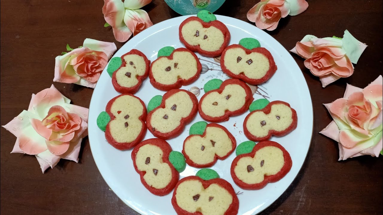 আপেল কুকিজ রেসিপি।।বিস্কুট রেসিপি।।Apple Cookies।।Apple Shape Butter ...