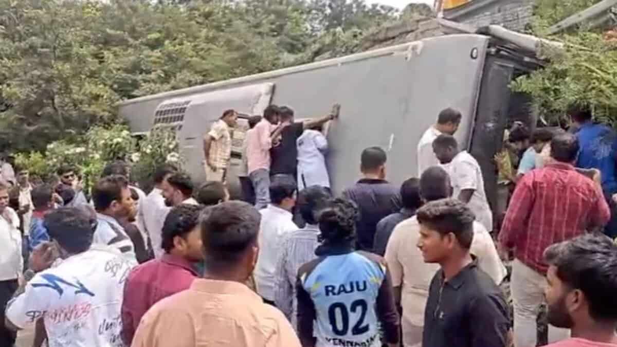 Hyderabad: Bus overturns at Pedda Amberpet ORR, driver suffers serious ...