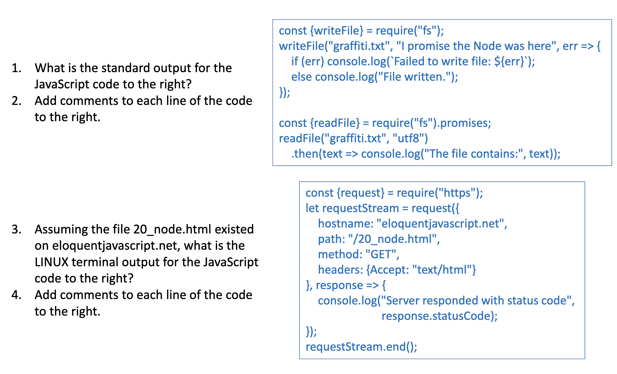 Solved 1. What is the standard output for the JavaScript | Chegg.com