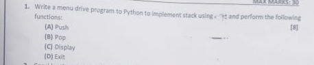 Question14-IMPLEMENT STACK USING LIST | PDF | Computer Programming ...
