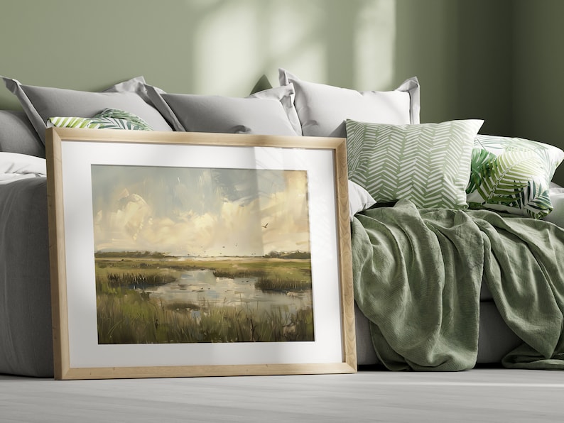 Marshland Landscape, Wetlands Oil Painting Art Print Swamp Illustration ...