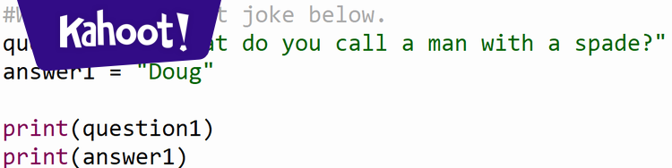 Based on this image's title: “Introduction to Programming - Python - Kahoot! Quiz”