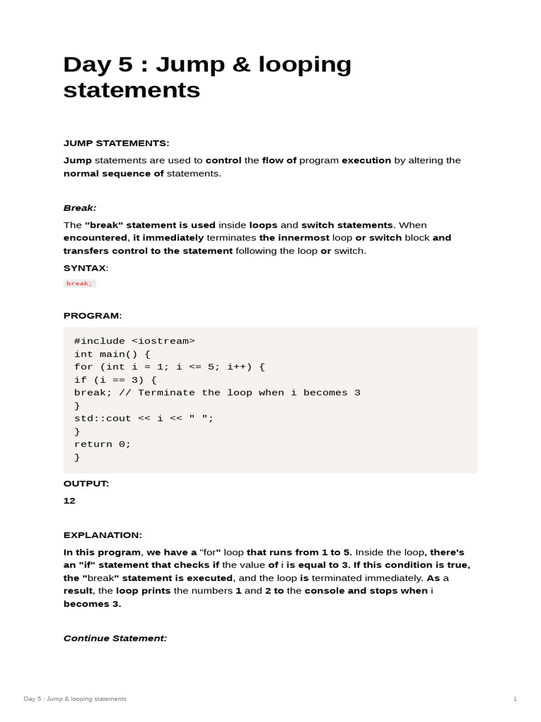 Day 5 Jump Looping Statements 240223 140313 | PDF