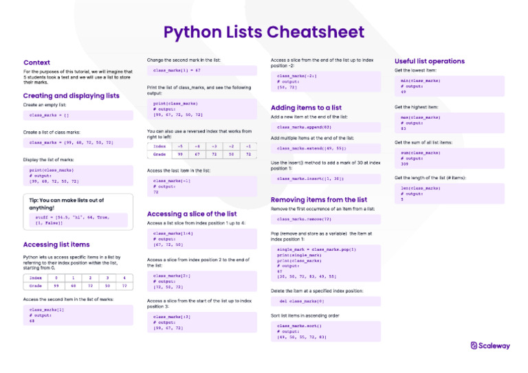Python Lists Cheat Sheet - Developer Resources : r/DevTo