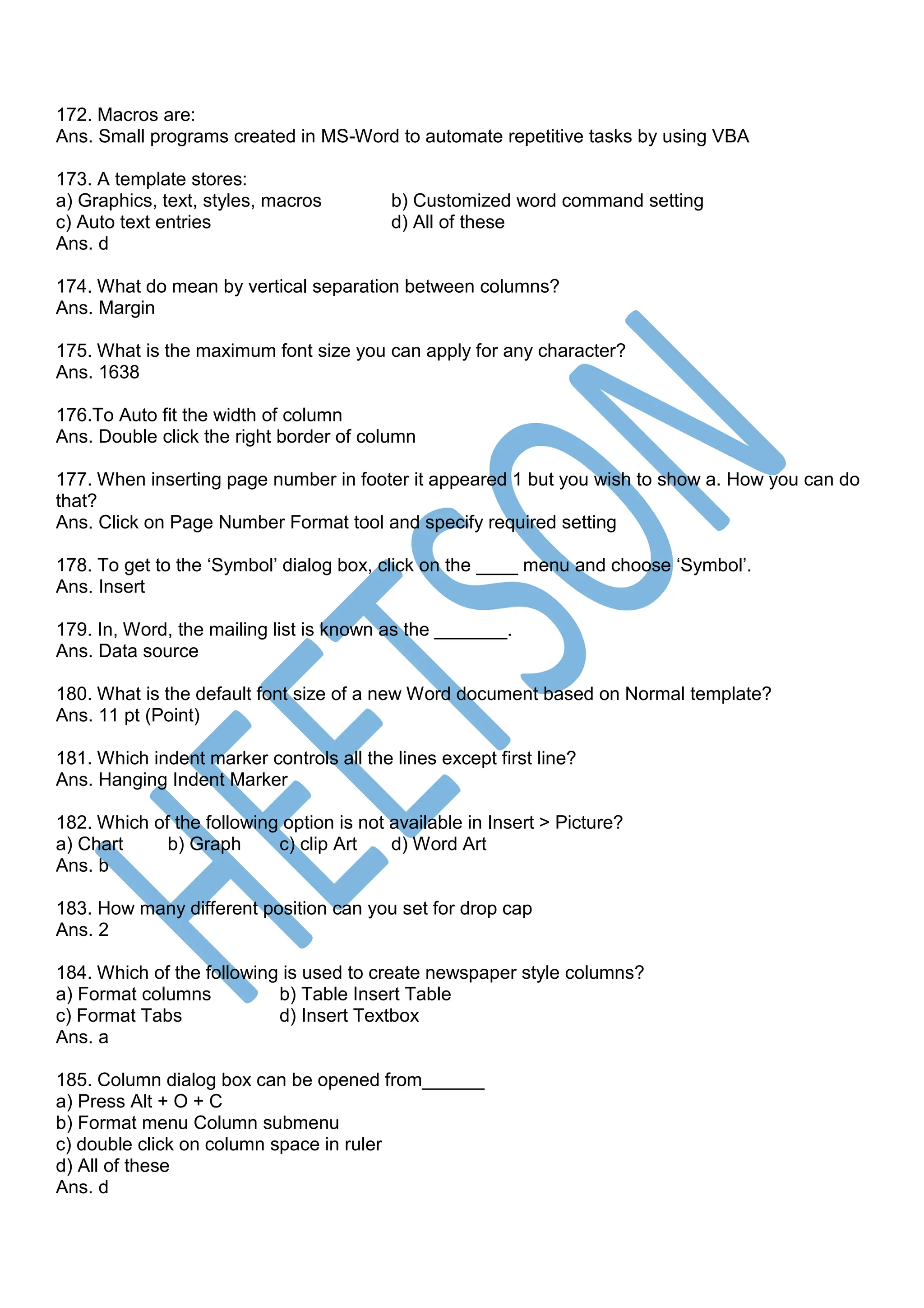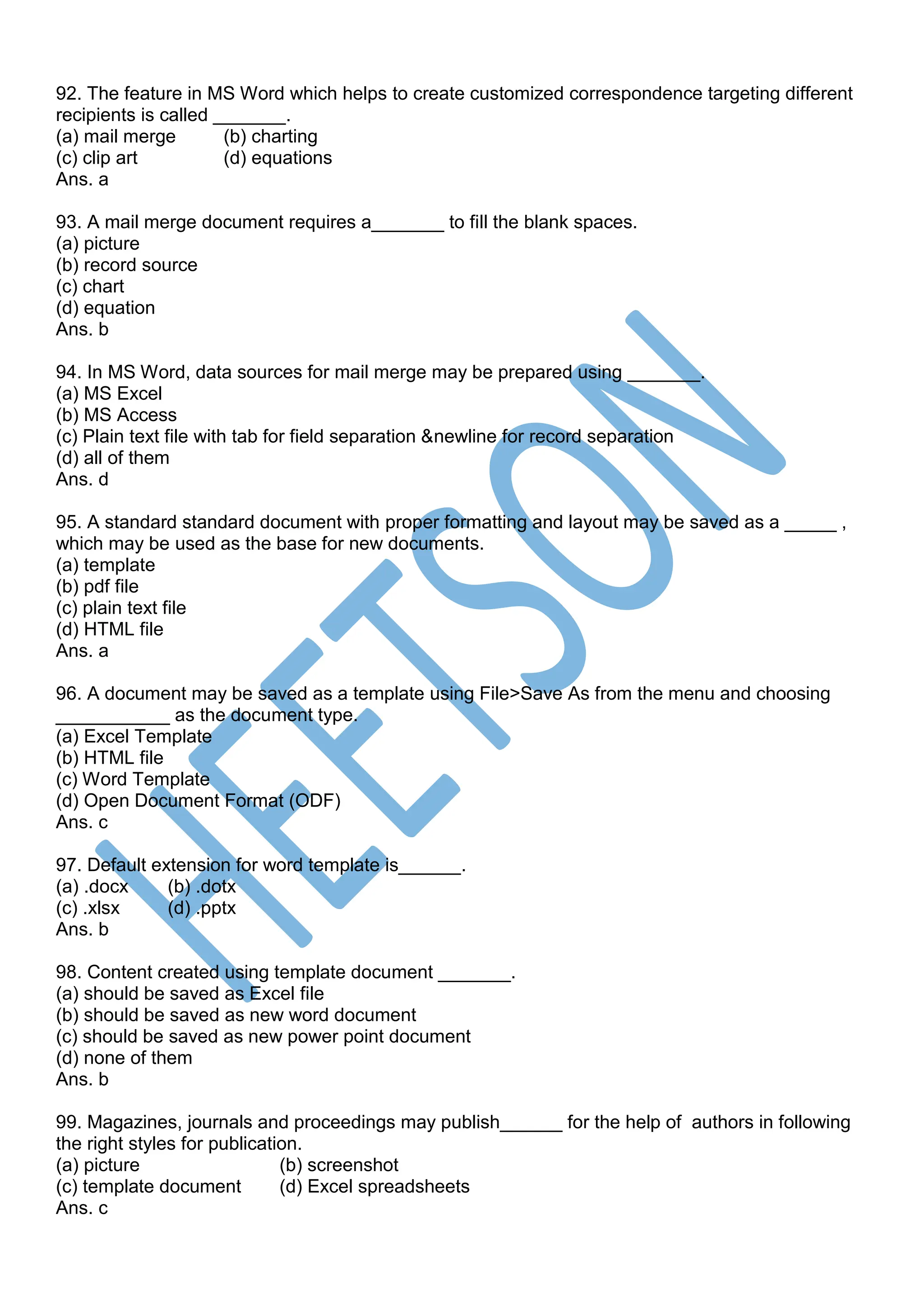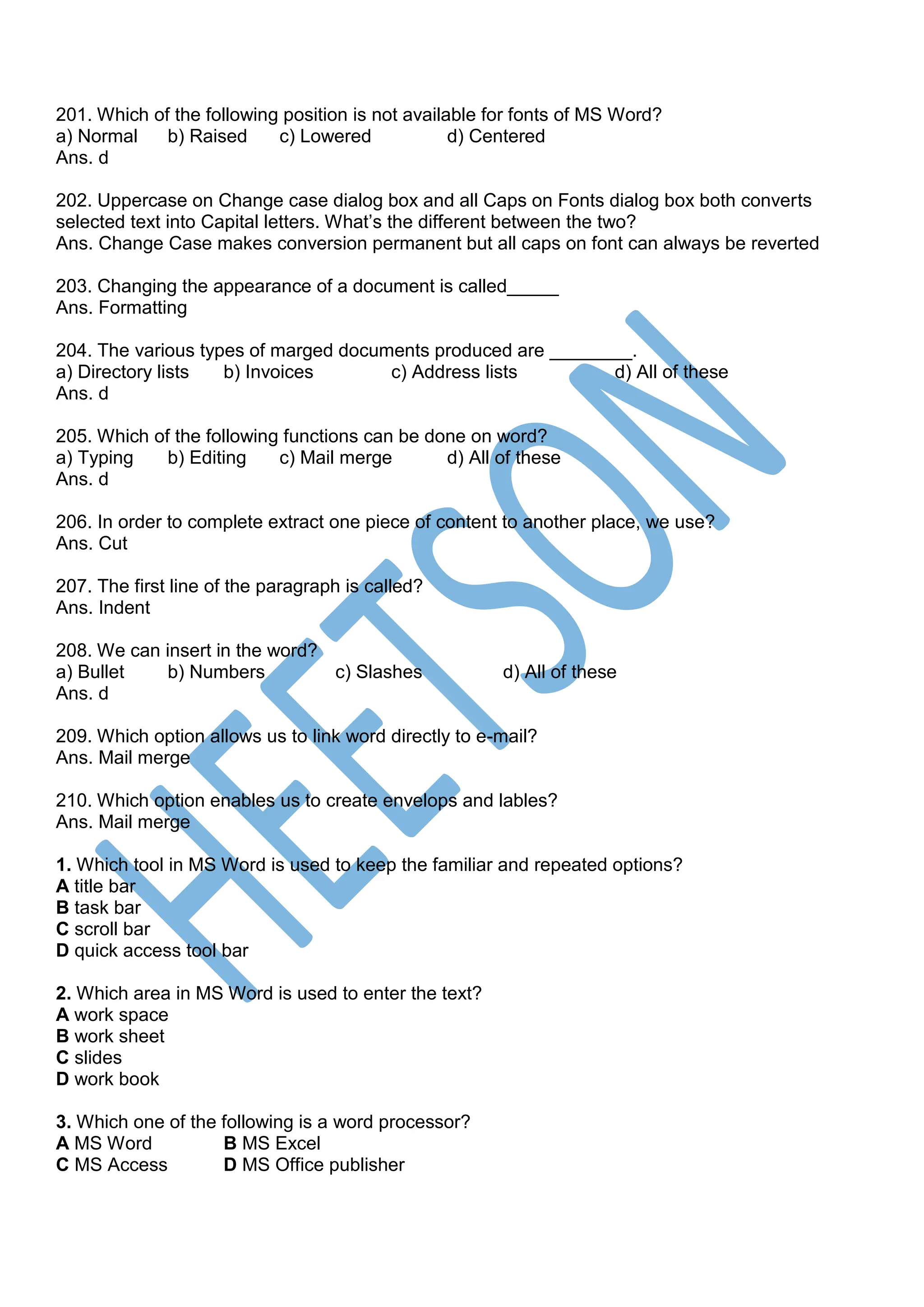MS Word MCQ Questions and Answers PDF [230 MCQs]