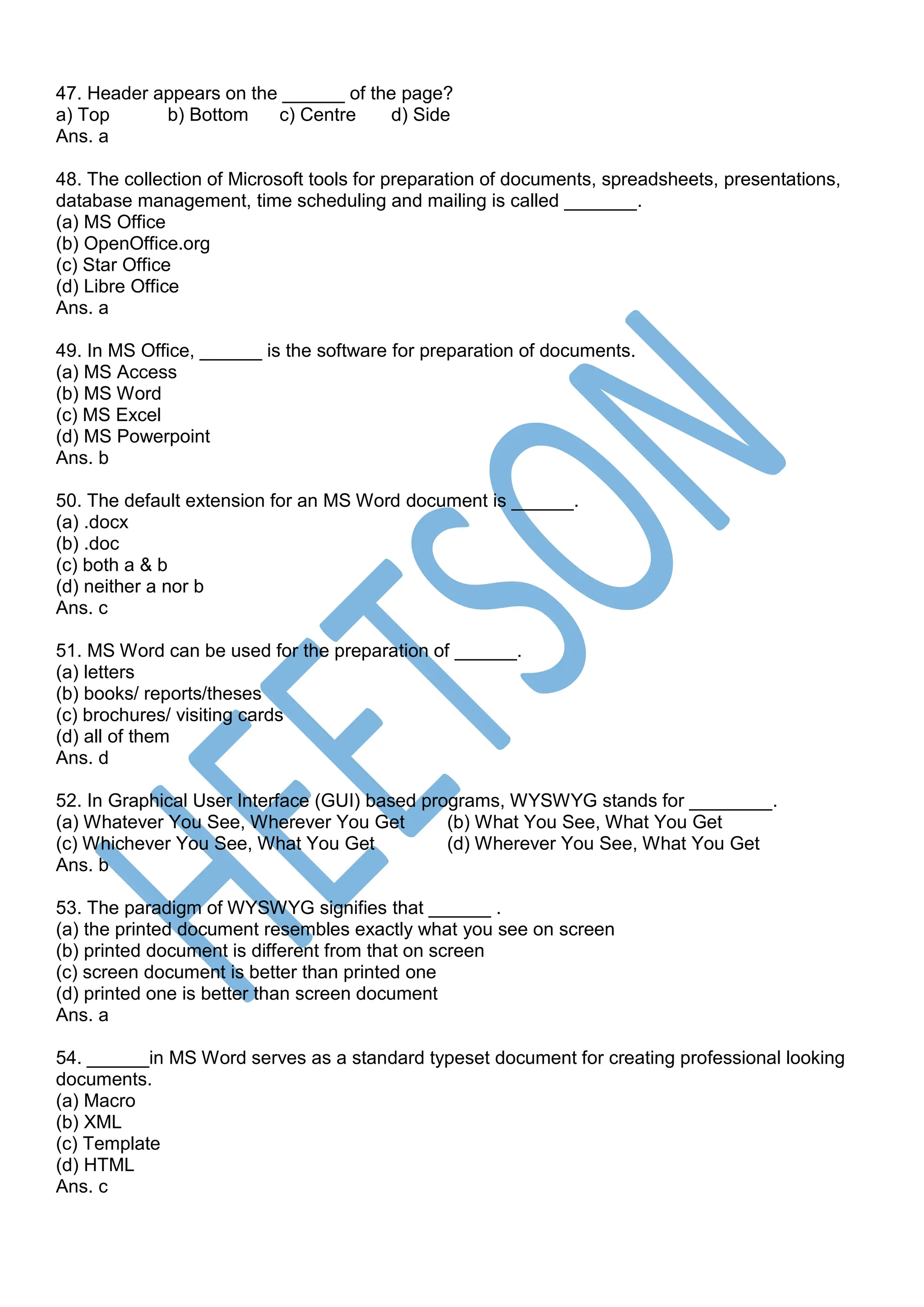 Top 50 MS Word MCQ Question and Answers - MS Office - Microsoft Office ...