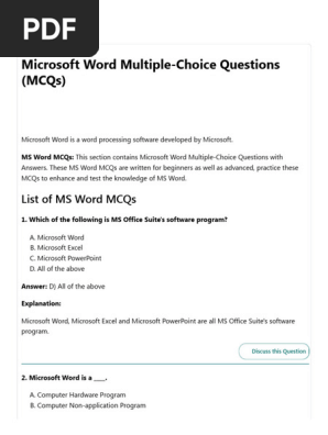 Ms Word MCQ Questions Answers | PDF | Teaching Methods & Materials ...
