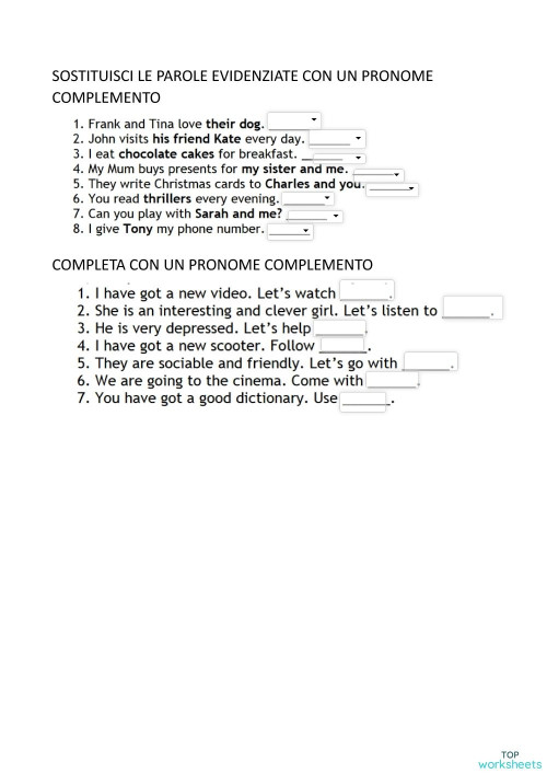 OBJECT PRONOUNS. Interactive worksheet | TopWorksheets