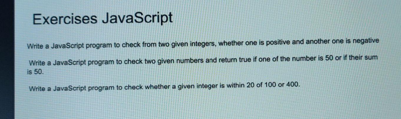 Solved Exercises JavaScript Write a JavaScript program to | Chegg.com