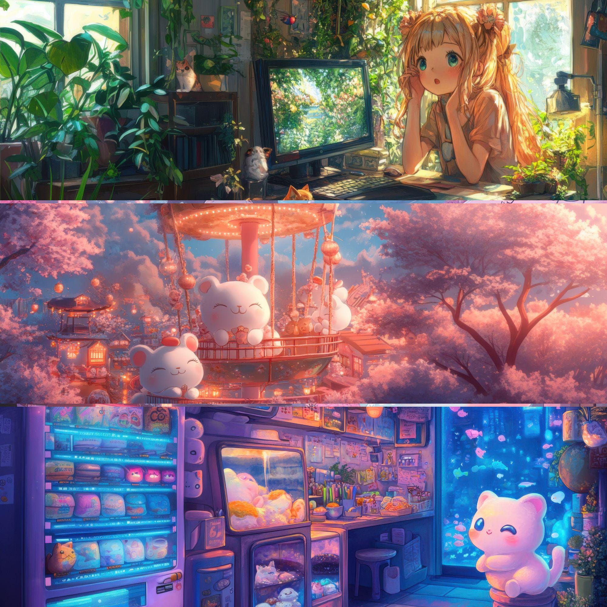 Kawaii Desktop Wallpaper | Cute Aesthetic Kawaii Background | Digital ...