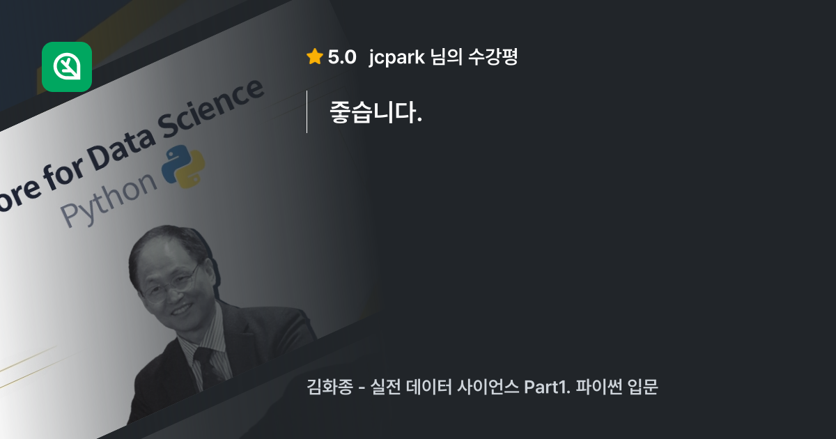 jcpark님의 생생한 수강평, 실전 데이터 사이언스 Part1. 파이썬 입문 - 인프런 | 수강평