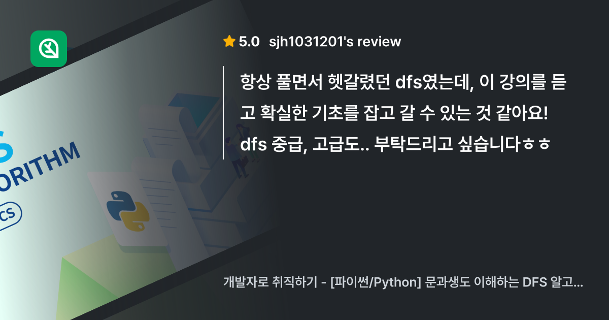 sjh1031201님의 생생한 수강평, [파이썬/Python] 문과생도 이해하... - 인프런 | 수강평