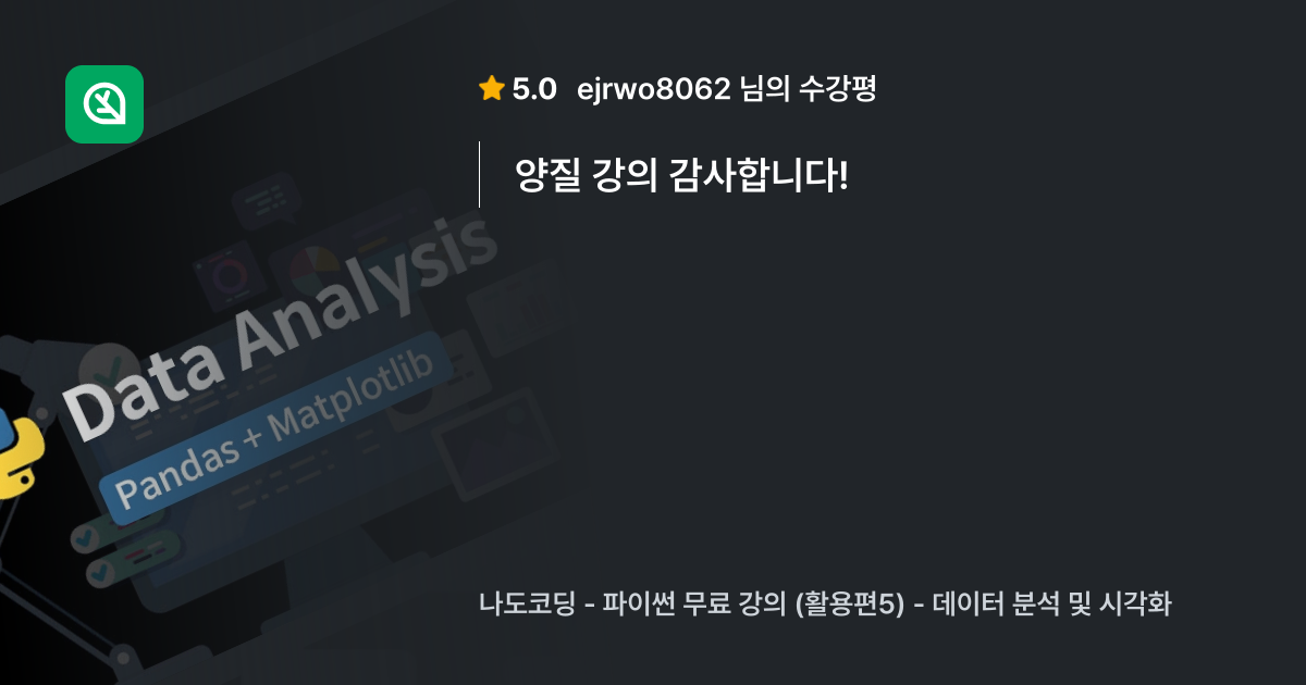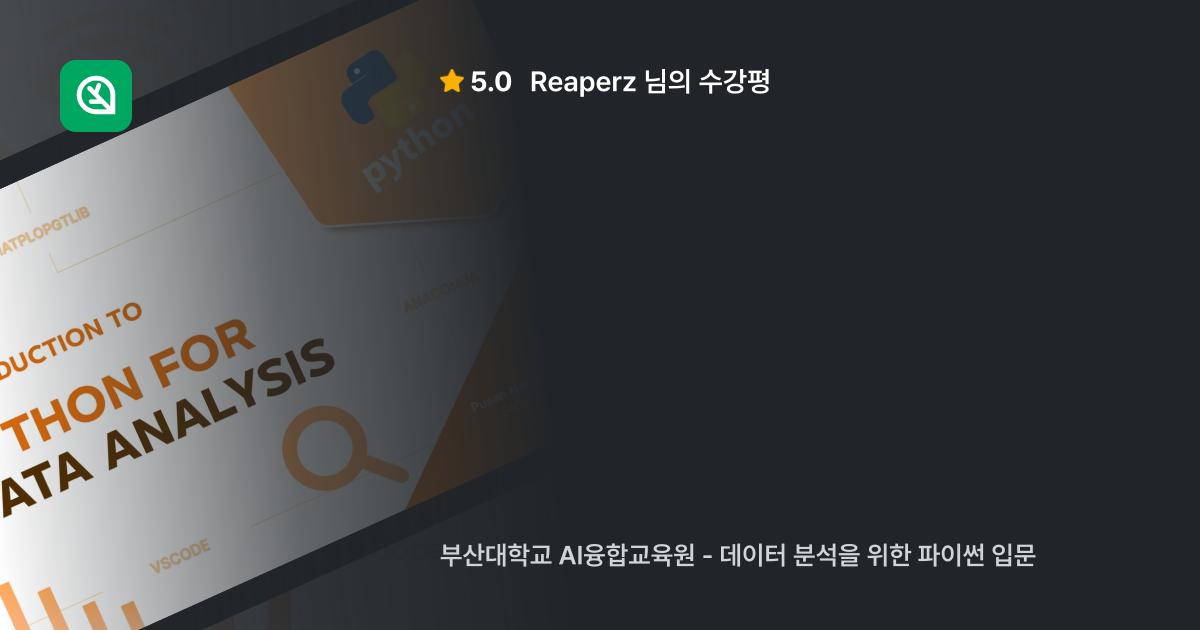 Reaperz님의 생생한 수강평, 데이터 분석을 위한 파이썬 입문 - 인프런 | 수강평