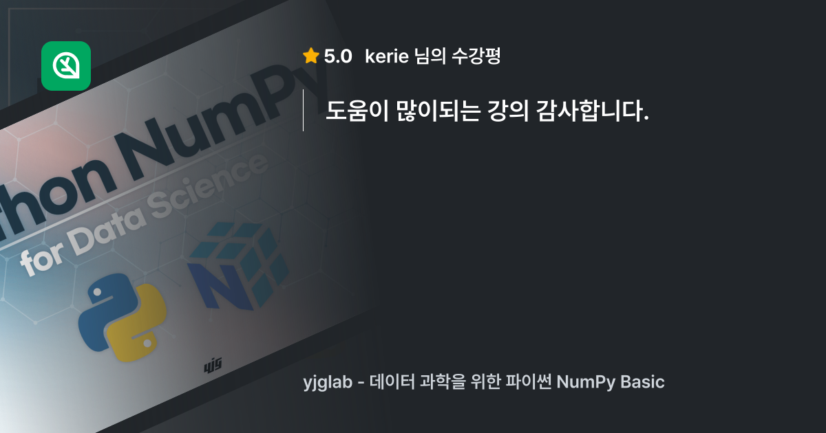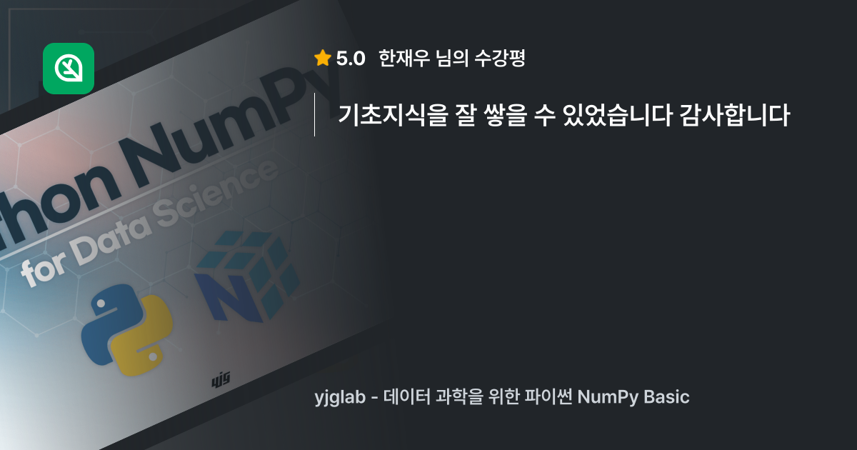 한재우님의 생생한 수강평, 데이터 과학을 위한 파이썬 NumPy Basic - 인프런 | 수강평