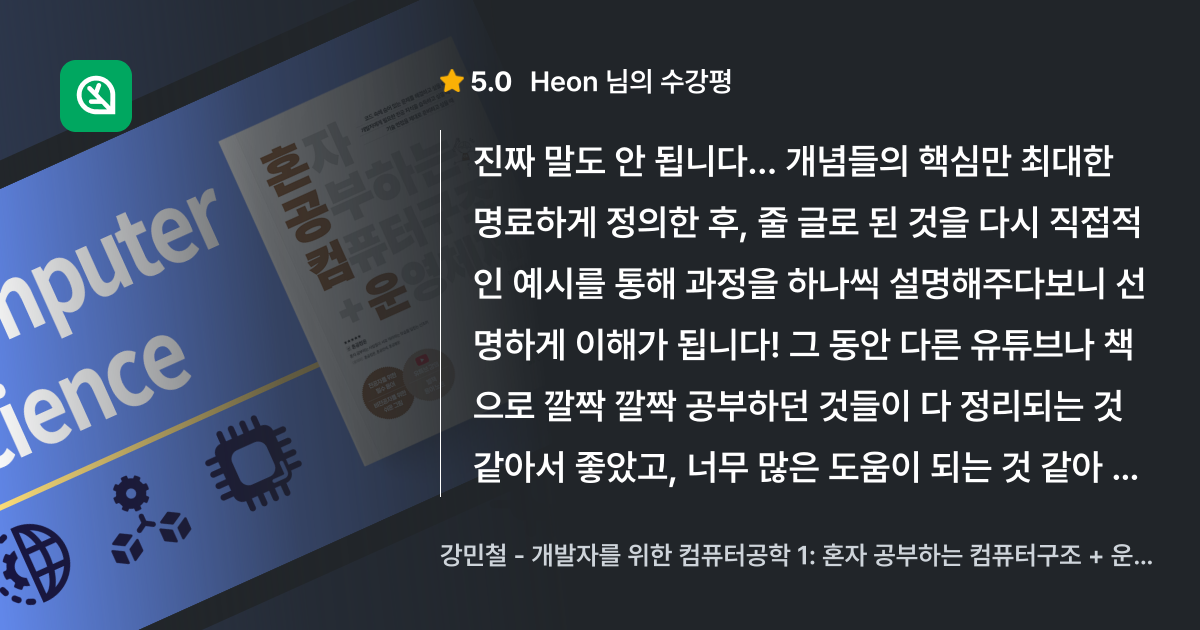 Heon님의 생생한 수강평, 개발자를 위한 컴퓨터공학 1: 혼자 공부하는 컴퓨... - 인프런 | 수강평
