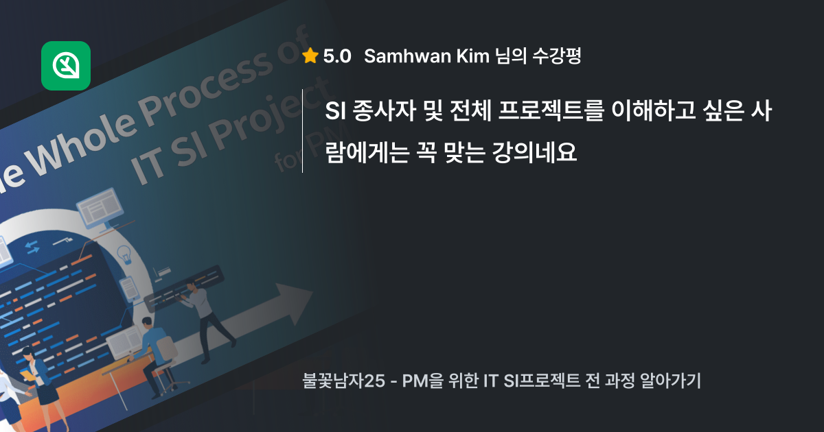 Samhwan Kim님의 생생한 수강평, PM을 위한 IT SI프로젝트 전 과... - 인프런 | 수강평