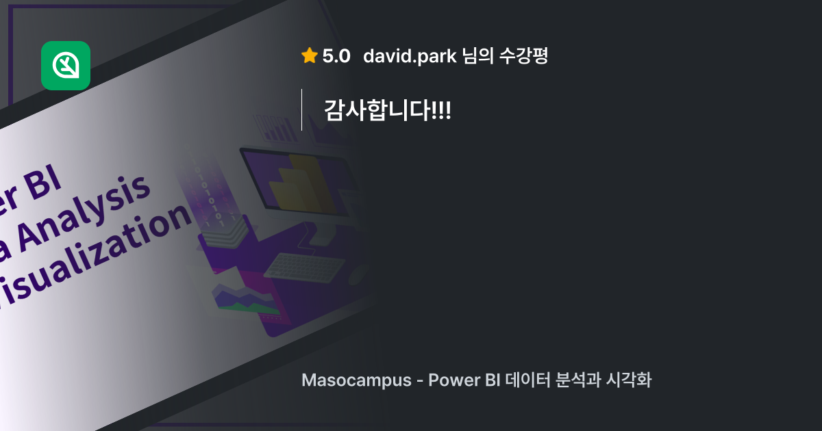 david.park님의 생생한 수강평, Power BI 데이터 분석과 시각화 - 인프런 | 수강평