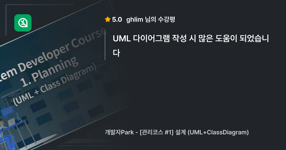ghlim님의 생생한 수강평, [관리코스 #1] 설계 (UML+ClassDia... - 인프런 | 수강평