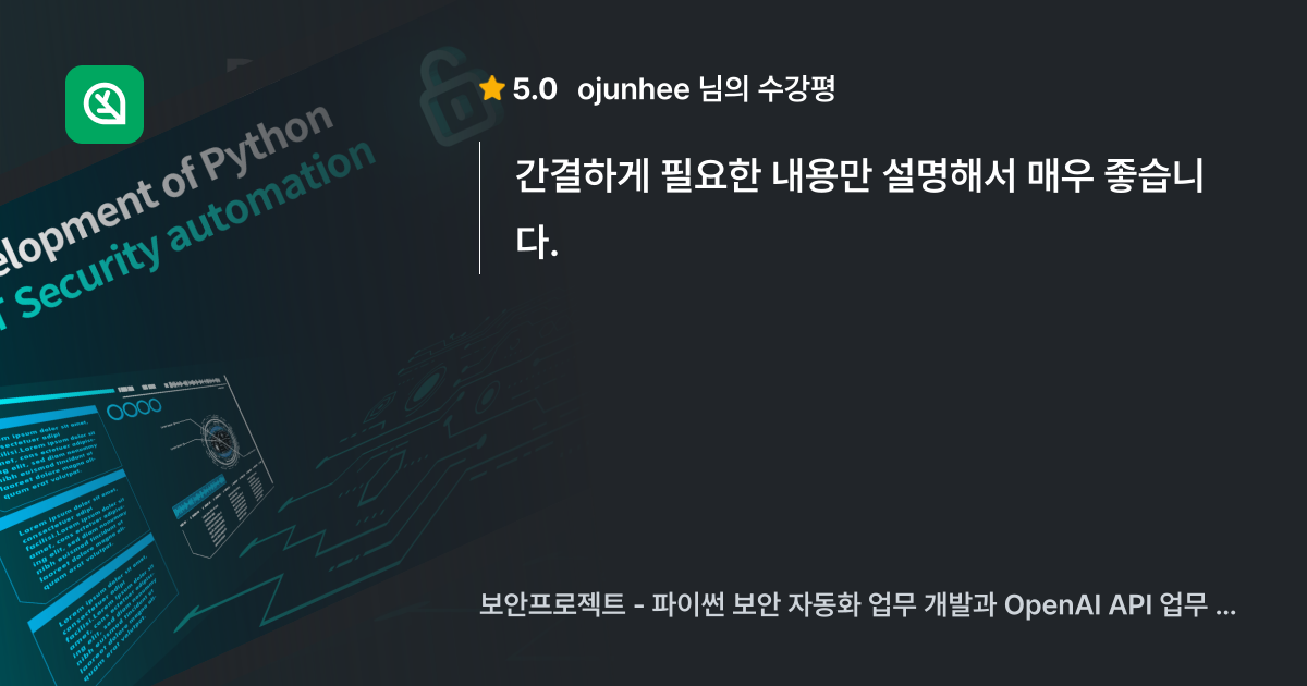 ojunhee님의 생생한 수강평, 파이썬 보안 자동화 업무 개발과 OpenAI... - 인프런 | 수강평