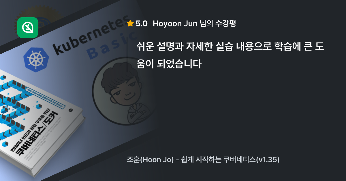Hoyoon Jun님의 생생한 수강평, 쉽게 시작하는 쿠버네티스(v1.30) ... - 인프런 | 수강평