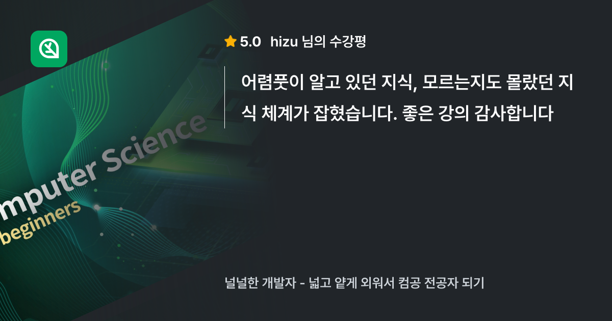 hizu님의 생생한 수강평, 넓고 얕게 외워서 컴공 전공자 되기 - 인프런 | 수강평