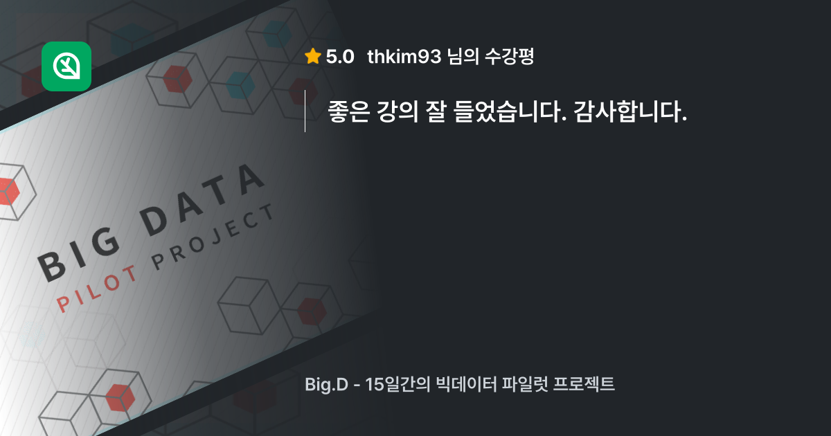 thkim93님의 생생한 수강평, 15일간의 빅데이터 파일럿 프로젝트 - 인프런 | 수강평