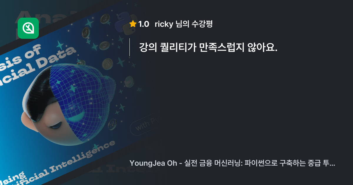 ricky님의 생생한 수강평, 파이썬과 인공지능을 활용한 금융 자료 분석 - 인프런 | 수강평