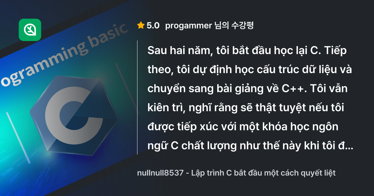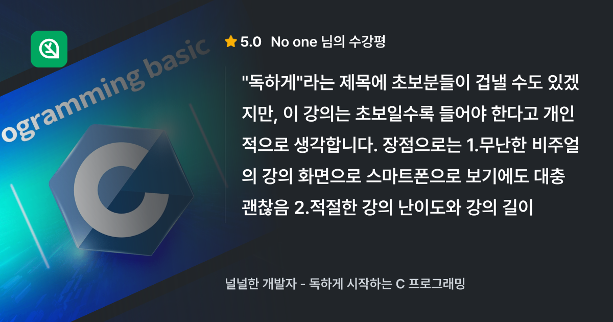 No one님의 생생한 수강평, 독하게 시작하는 C 프로그래밍 - 인프런 | 수강평