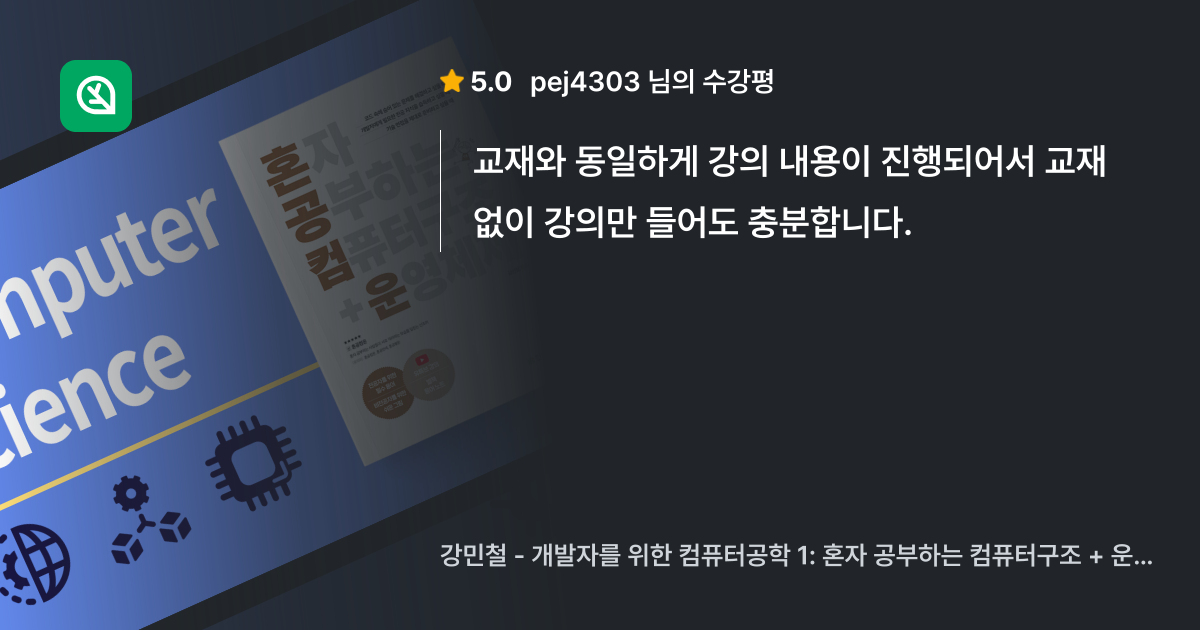 pej4303님의 생생한 수강평, 개발자를 위한 컴퓨터공학 1: 혼자 공부하는... - 인프런 | 수강평