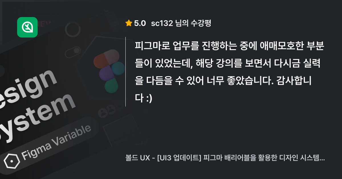 sc132님의 생생한 수강평, [UI3 업데이트] 피그마 배리어블을 활용한 디... - 인프런 | 수강평