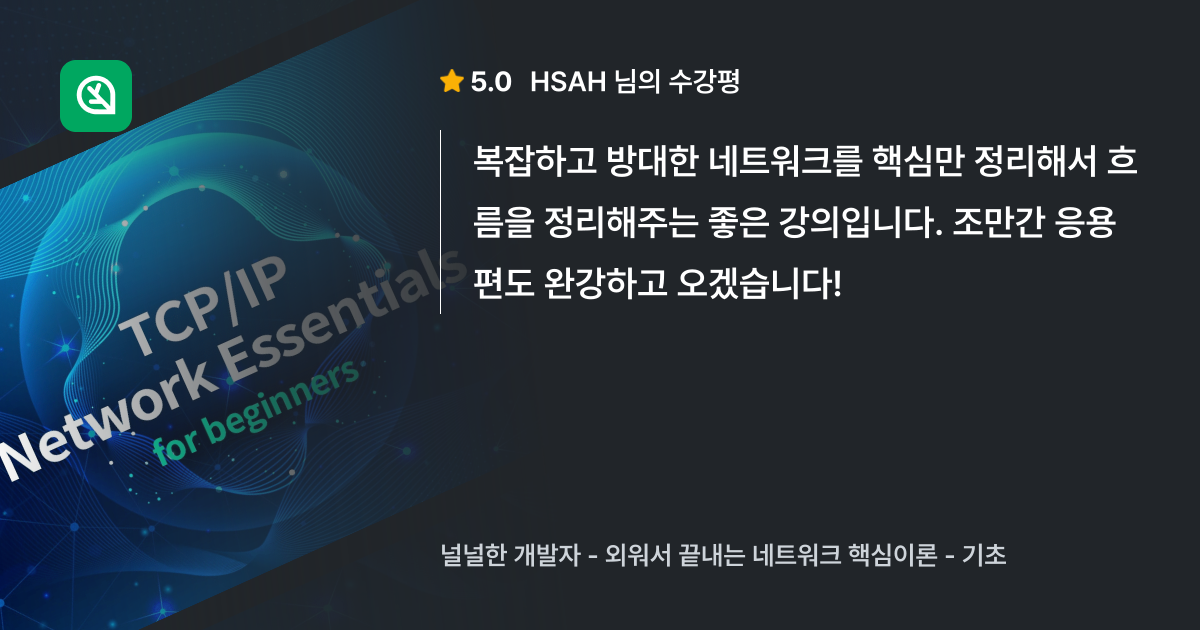 HSAH님의 생생한 수강평, 외워서 끝내는 네트워크 핵심이론 - 기초 - 인프런 | 수강평