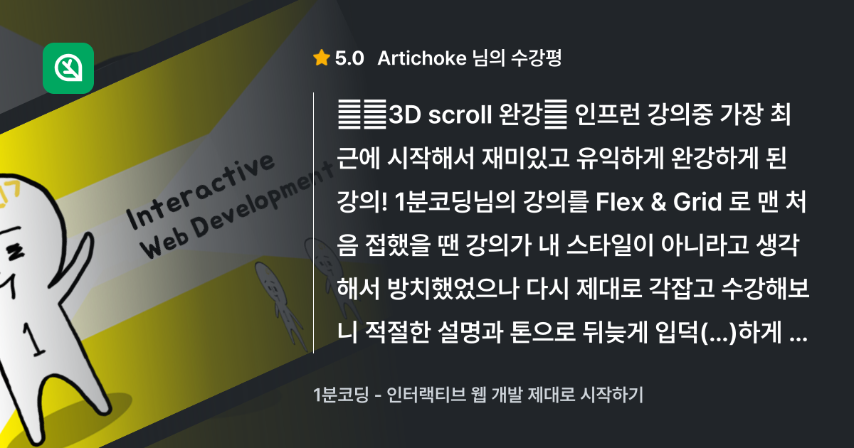 Artichoke님의 생생한 수강평, 인터랙티브 웹 개발 제대로 시작하기 - 인프런 | 수강평