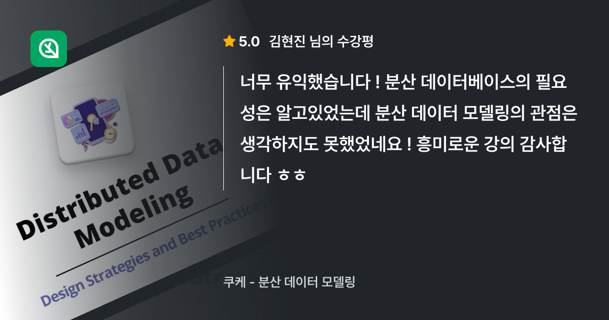 김현진님의 생생한 수강평, 분산 데이터 모델링 - 인프런 | 수강평